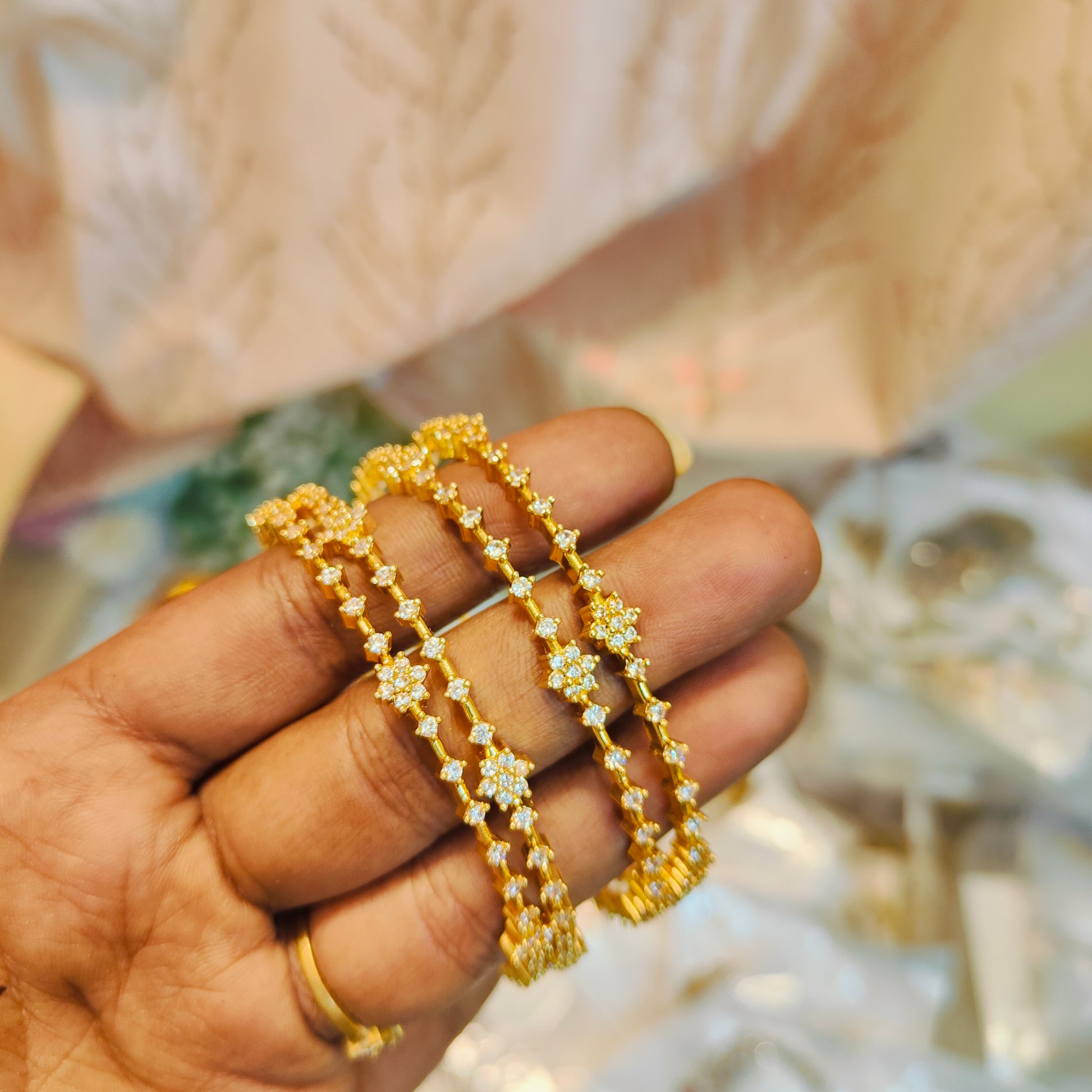 Cz stone diamond replica bangles set of 4