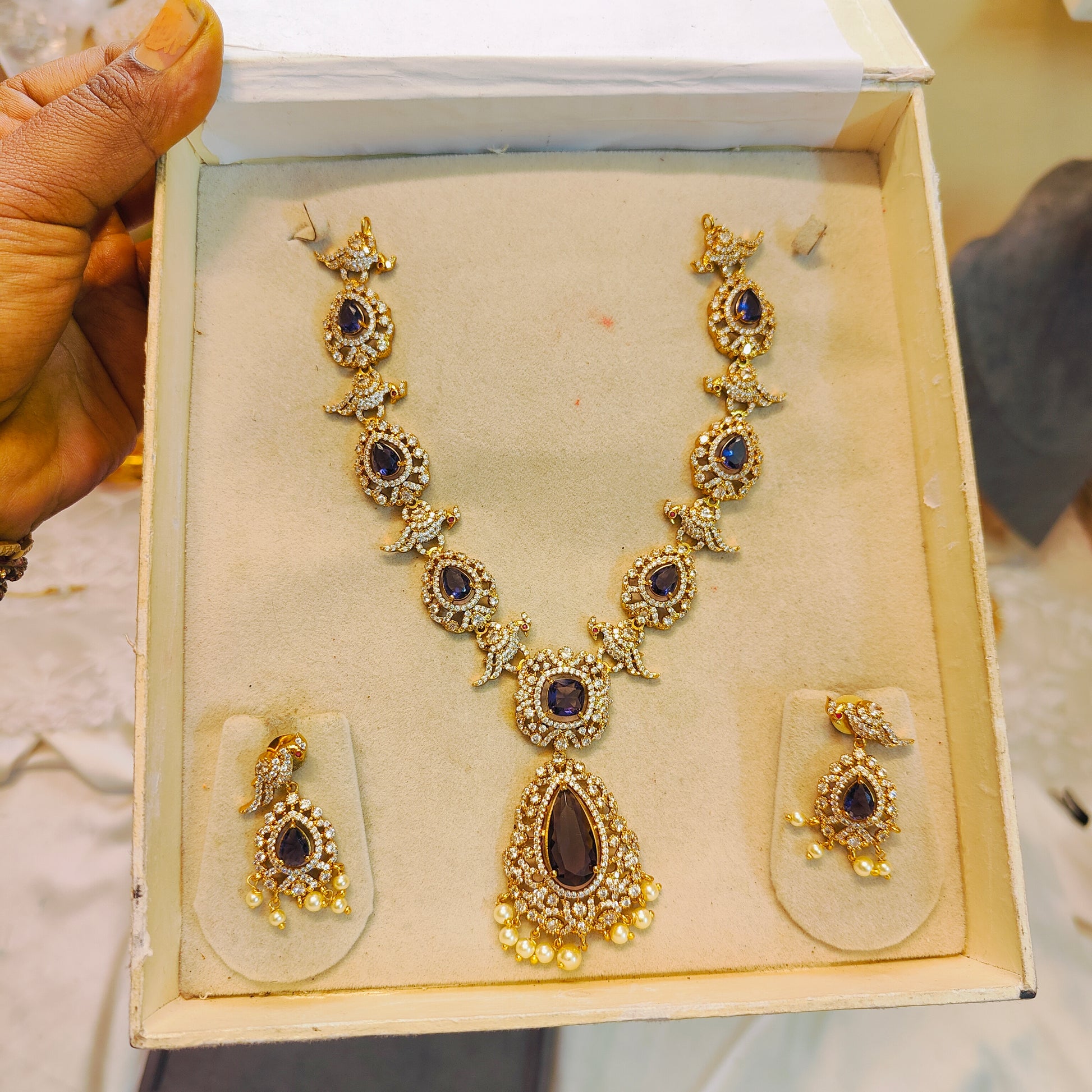 Royal Sapphire Bird Cz necklace set